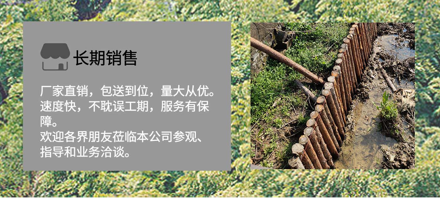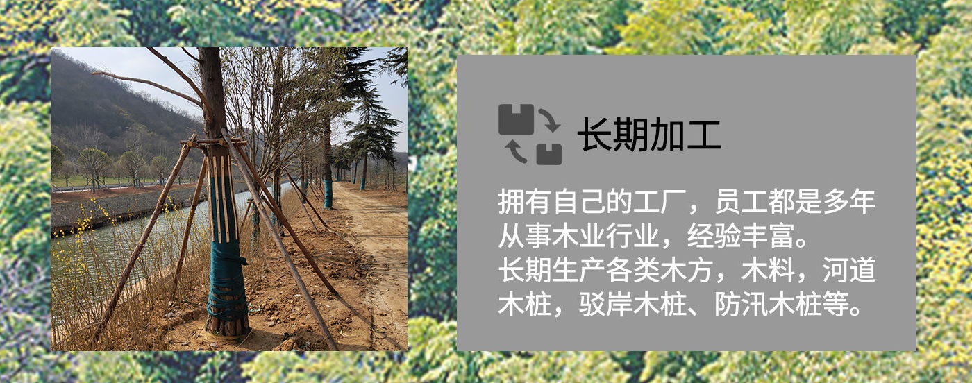 南京市云森木業(yè)有限公司位于南京市高淳區(qū)。是一家生產(chǎn)加工,線上銷售為一體的現(xiàn)代化企業(yè)。擁有完善、科學(xué)的質(zhì)量管理體系及工作團(tuán)隊(duì)。 公司主營(yíng)松木樁,杉木樁,打樁木,河道木樁,駁岸木樁,防汛木樁,景觀木樁、園林綠化支撐桿等,也可支持方料,木板等木材定制加工產(chǎn)品,所選原材料均為黃山中心林區(qū),樹齡均在三十年左右。質(zhì)地緊密,樹形優(yōu)美。 本公司貨源充足,供貨能力強(qiáng),地處高淳,交通方便利,江浙滬皖送貨上門,當(dāng)天可達(dá)。本著“誠(chéng)信為本,客戶至上”的經(jīng)營(yíng)宗旨,真誠(chéng)希望與您合作。 歡迎各位客戶前來咨詢,定以優(yōu)良品質(zhì)和價(jià)格回饋廣大客戶。