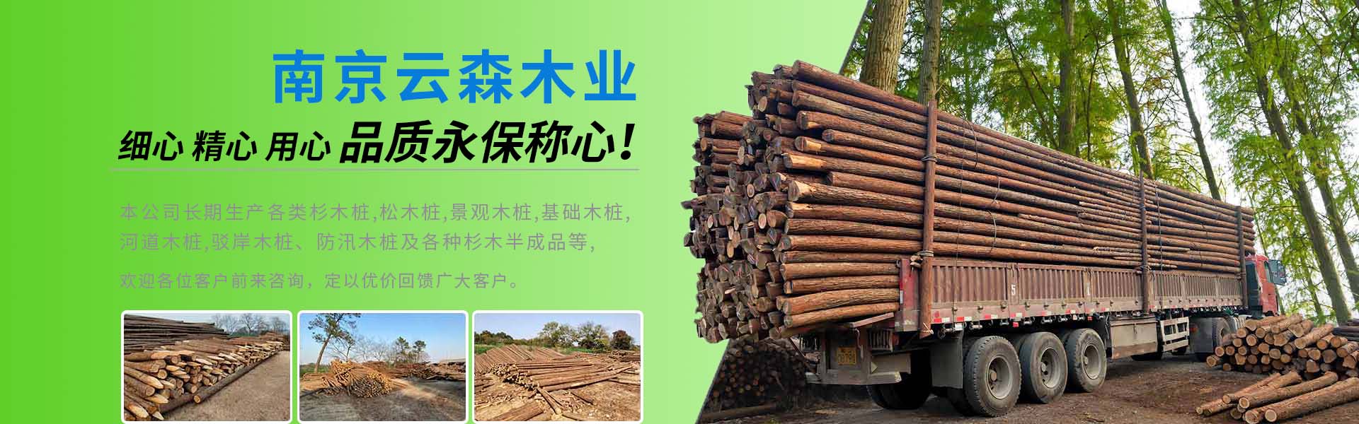 南京市云森木業(yè)有限公司位于南京市高淳區(qū)。是一家生產(chǎn)加工,線上銷售為一體的現(xiàn)代化企業(yè)。擁有完善、科學(xué)的質(zhì)量管理體系及工作團(tuán)隊(duì)。 公司主營(yíng)松木樁,杉木樁,打樁木,河道木樁,駁岸木樁,防汛木樁,景觀木樁、園林綠化支撐桿等,也可支持方料,木板等木材定制加工產(chǎn)品,所選原材料均為黃山中心林區(qū),樹齡均在三十年左右。質(zhì)地緊密,樹形優(yōu)美。 本公司貨源充足,供貨能力強(qiáng),地處高淳,交通方便利,江浙滬皖送貨上門,當(dāng)天可達(dá)。本著“誠(chéng)信為本,客戶至上”的經(jīng)營(yíng)宗旨,真誠(chéng)希望與您合作。 歡迎各位客戶前來咨詢,定以優(yōu)良品質(zhì)和價(jià)格回饋廣大客戶。